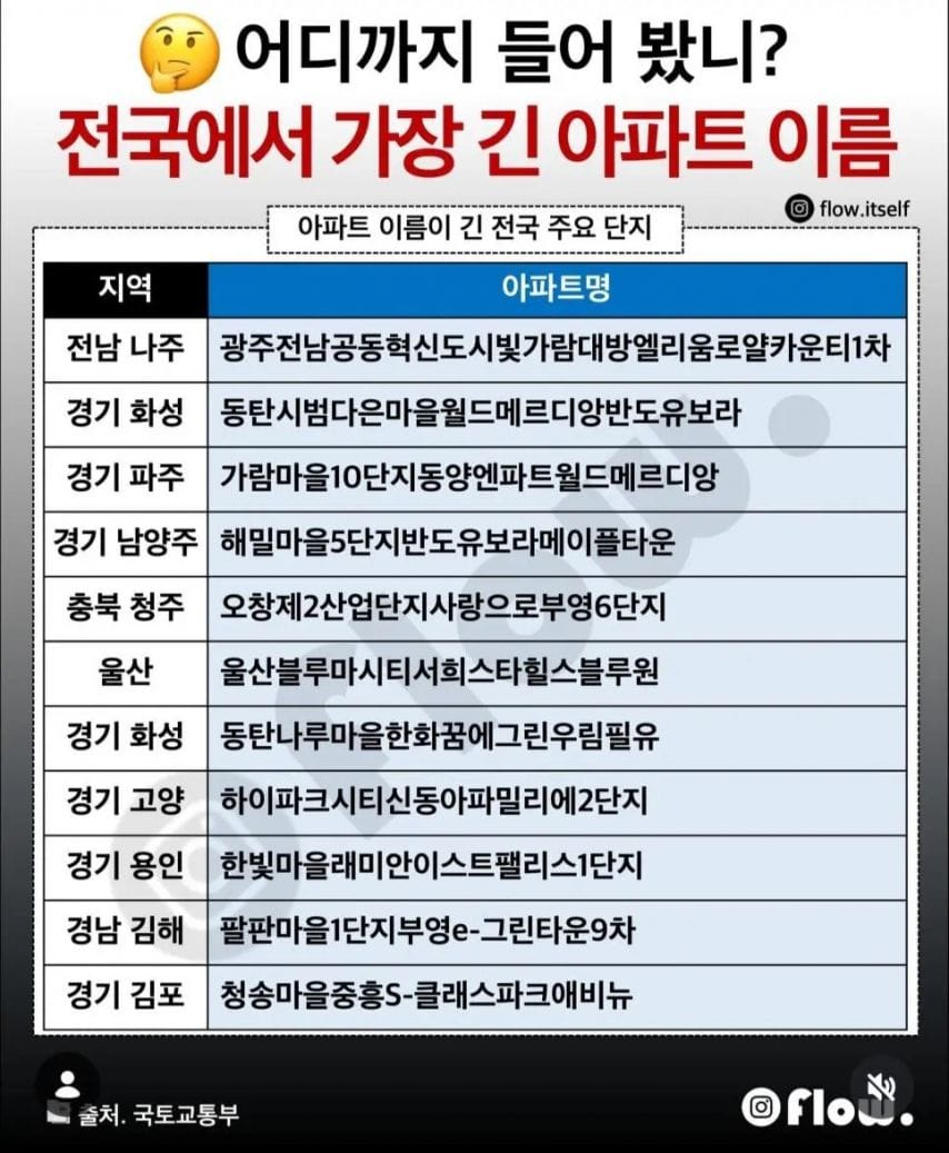 전국에서 가장 긴 아파트 이름 1 3월 2026 • 1 min read • comment Subscribe to 호잇짜응의 시간 죽이기 Get the latest posts delivered right to your inbox Subscribe Great! Check your inbox and click the link to confirm your subscription. Please enter a valid email address!