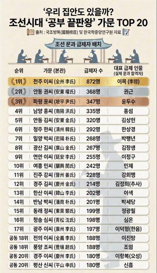 조선시대 공부 끝판왕 가문 top 20 1 3월 2026 • 1 min read • comment Subscribe to 호잇짜응의 시간 죽이기 Get the latest posts delivered right to your inbox Subscribe Great! Check your inbox and click the link to confirm your subscription. Please enter a valid email address!